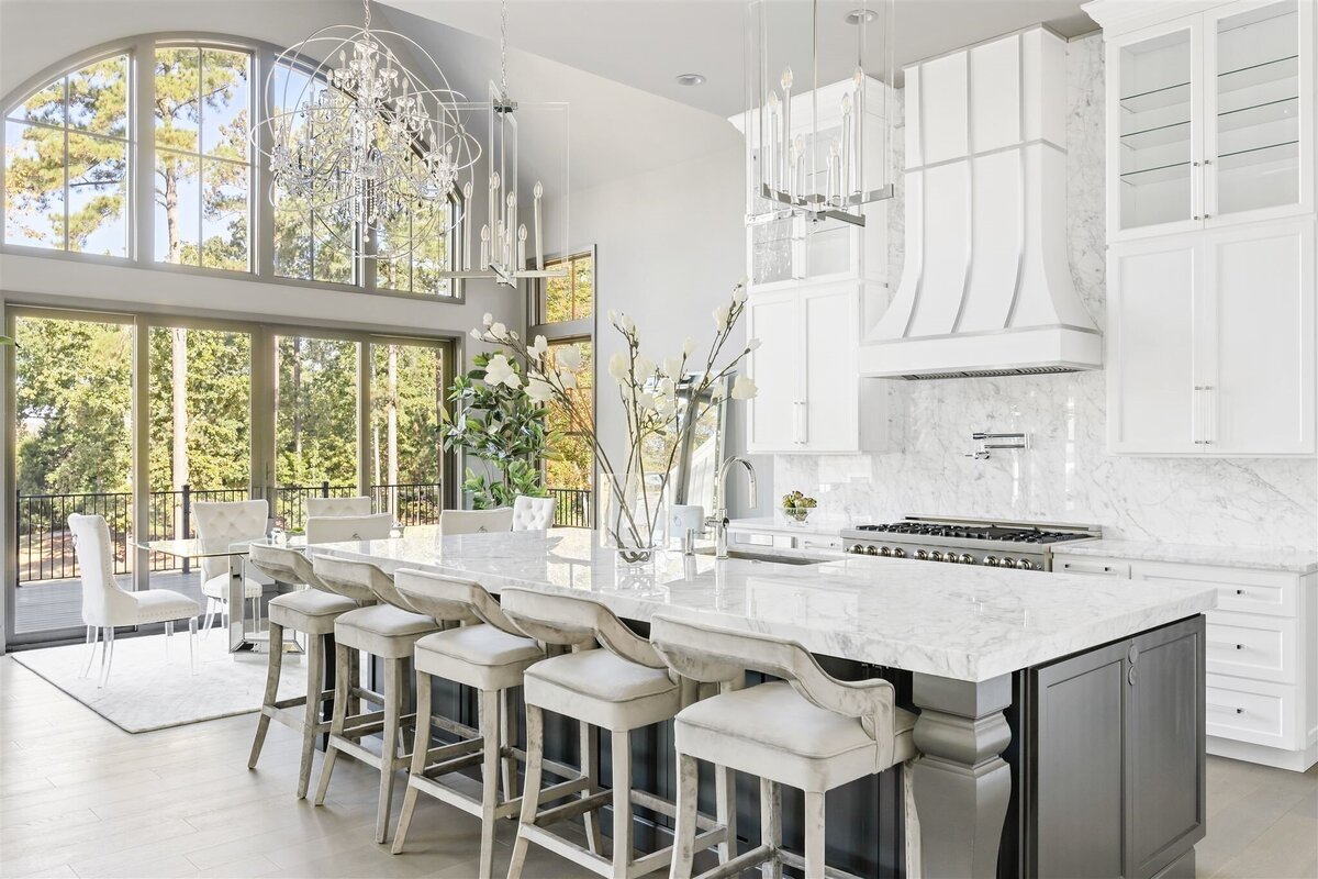 The project took place in Harlem, GA. The goal of this project was to obtain a clean, cool, classic look that incorporated the high ceilings. The decorative panels on the rear of the peninsula help provide sophistication and style to the design.